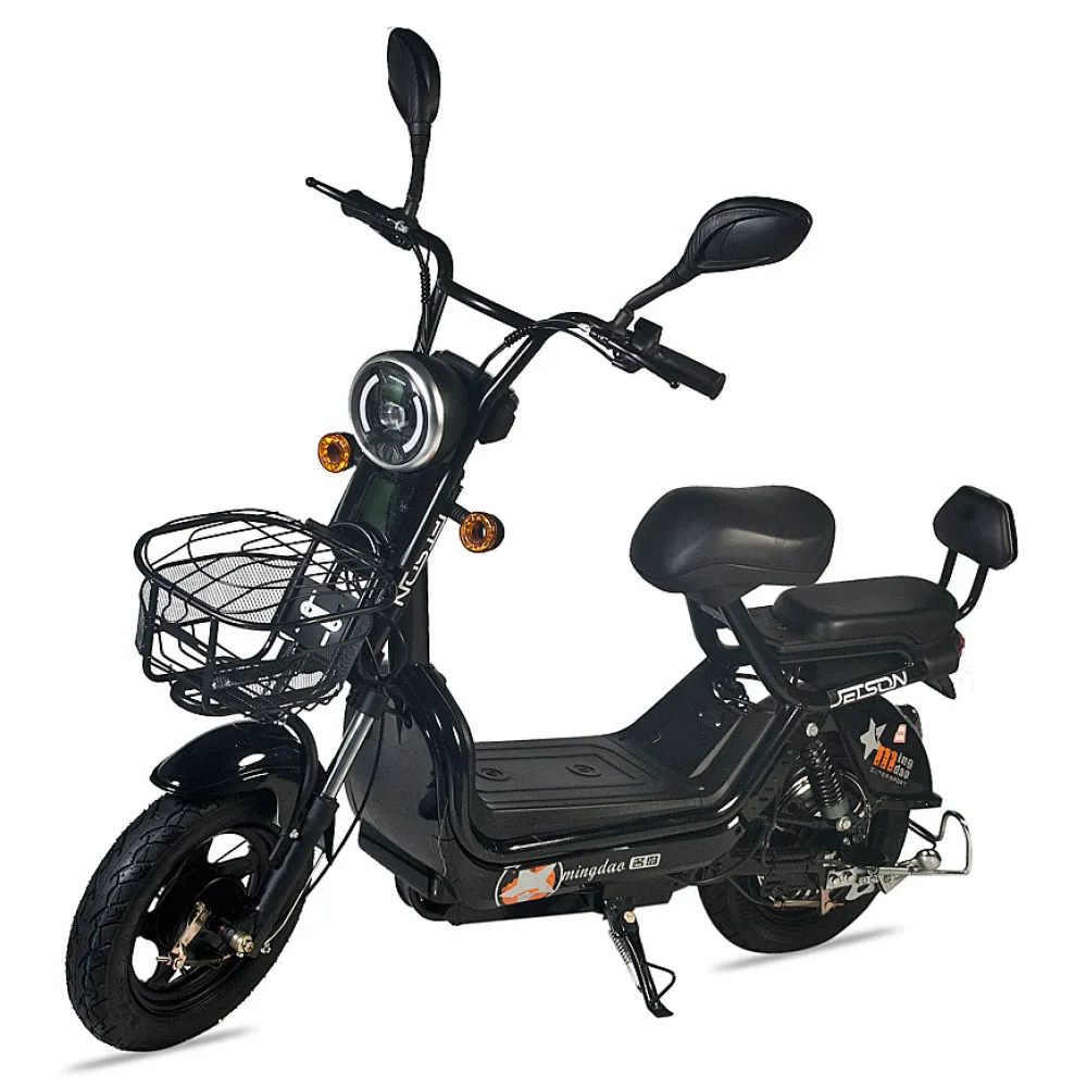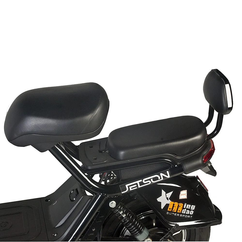 Удобная замена общественному транспорту и личному автомобилю – электроскутер GM-60 от компании Jetson. Сочетая в себе современный дизайн, динамику и комфорт, этот скутер способен проехать до 80 километров без подзарядки благодаря своему ёмкому свинцовому аккумулятору – целых 20 Ач. Батарею можно легко снять и заряжать там, где вам удобно. 450-Ваттный электромотор способен разогнать скутер до 50 км/ч даже при наибольшей возможной нагрузке – 180 килограмм. Мягкое, широкое и прочное сидение из эко-кожи с прямой посадкой делает самые долгие поездки на электроскутере приятными как для водителя, так и для пассажира. Тормоза скутера – барабанного типа и спереди, и сзади – срабатывают эффективно и без лишних рывков. Мощная LED-фара и яркие габаритные огни делают передвижение на скутере ночью безопасным. Управление движением, фарами и скоростными передачами осуществляется с помощью кнопок и ручек на руле. Высокопрофильные, 16-дюймовые колёса спокойно проезжают через любые препятствия на городских дорогах. В комплекте Jetson GM-60 идут корзина для перевозки вещей, пассажирское седло и сигнализация.