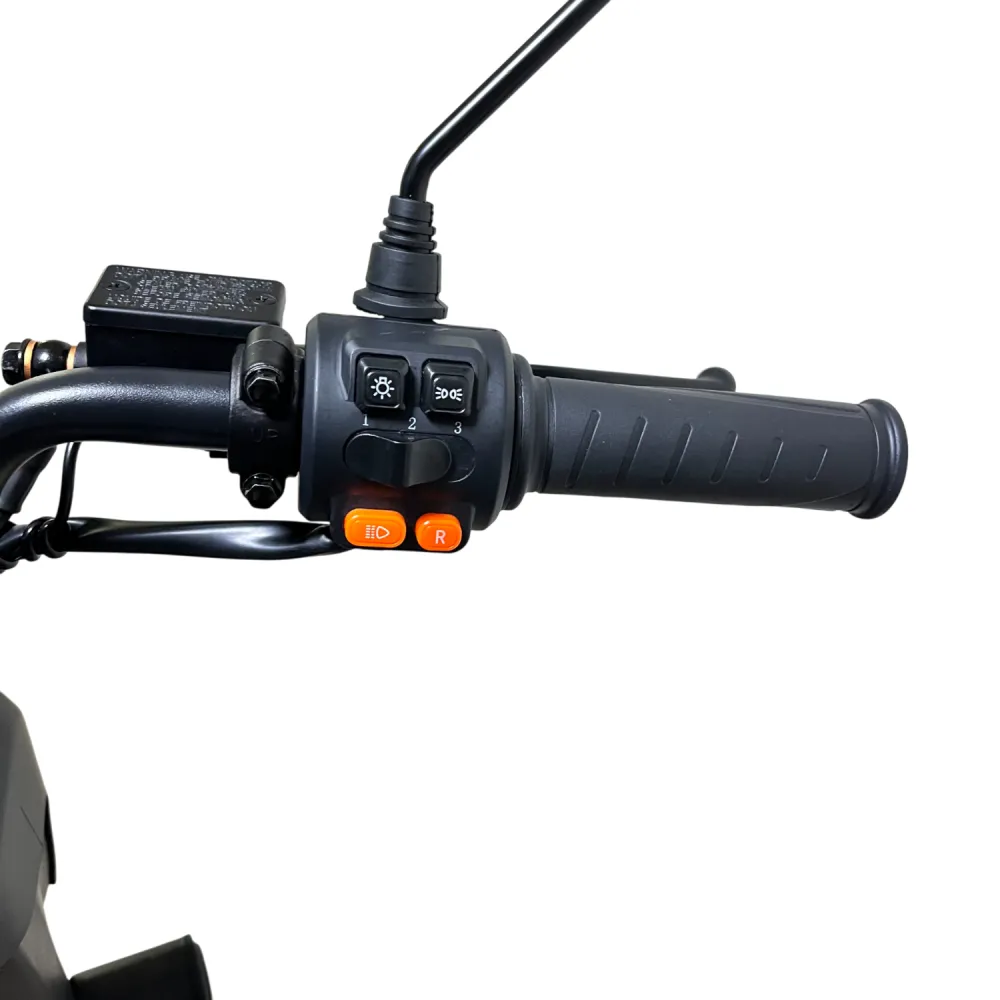 В стандартной комплектации есть гидравлическая подвеска, дисковые тормоза, LED-освещение и информативный дисплей. 12-транзисторный контроллер обеспечивает плавную работу и высокую надёжность электроники. При желании вы можете снять кофр и он превращается в скутер.