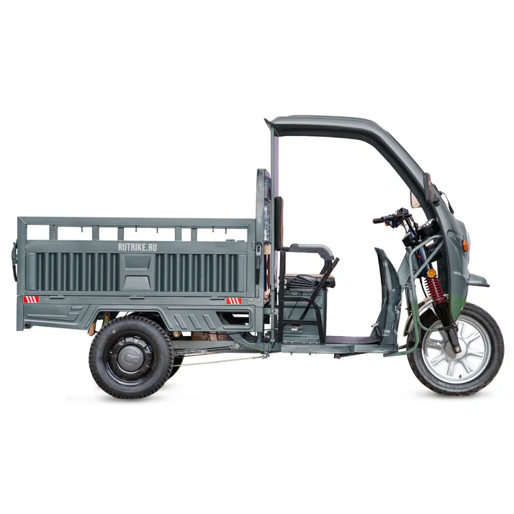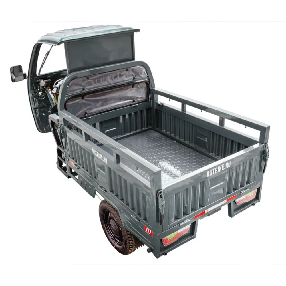 Грузовой электротрицикл Rutrike Гермес 1500 60V1200W серого цвета - это надежное и мощное транспортное средство для эффективной перевозки грузов. С его 1200-ваттным двигателем, он способен развивать скорость до 25 км/ч, что позволяет быстро доставлять грузы в нужные места.
