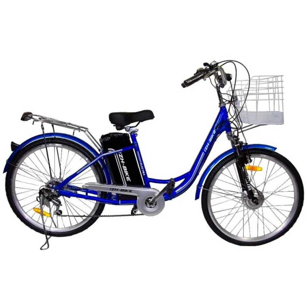 Модель IZH-BIKE Electra (Li-ion) с передним приводом и 26-дюймовыми колесами прекрасно подходит как для езды в городе, так и по пересеченной местности и грунтовым загородным дорогам, выдерживает большие нагрузки. Надежный стальной корпус, грузоподъемность до 110 кг, 6 скоростей и долговечная литиево-ионная батарея высокой емкости — существует множество факторов, склоняющих к выбору именно этого велосипеда. Модель развивает скорость до 26 км/ч, запас хода составляет до 50 км на одном заряде. Надежная система торможения (Передний тормоз PROMAX V-brake, задний — барабанный) максимально обезопасит езду на Izh-Bike Electra.