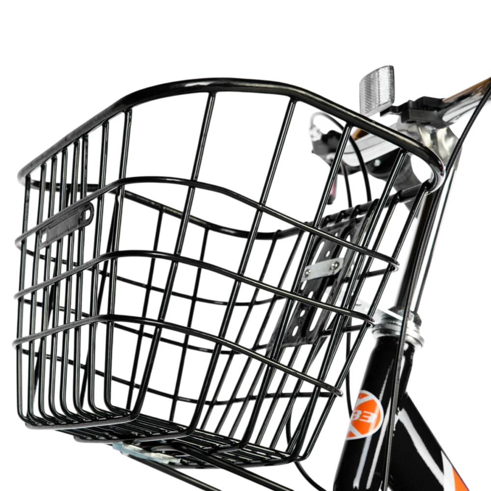 В комплекте: велосипед, насос, ключи, передняя/задняя корзины (до 15/50 кг, с замком сзади), крылья с усилителями, упоры на руле. Дополнительно: замок, фонари; апгрейдов официальных нет, совместим с универсальными (корзины, седла от других брендов).