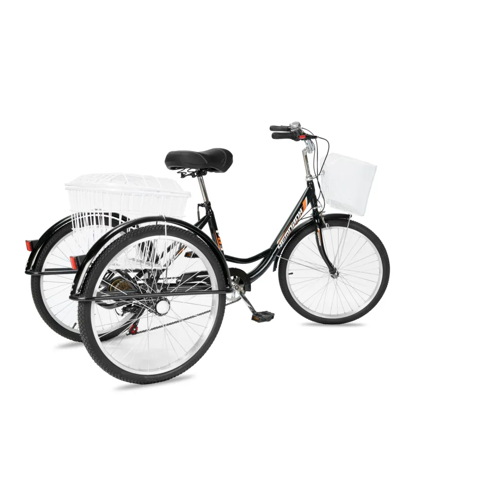 Производитель гарантирует высокое качество сборки и надежность конструкции, использует только фирменные запчасти. Рулевая часть и вилка изготовлены из прочной высококачественной стали. Максимальная допустимая нагрузка на велосипед составляет 170 кг. Для комфортности поездок руль и сидение можно отрегулировать по росту пользователя. Положительным моментов можно назвать приемлемую цену транспортного средства. Возможность экстренного торможения в любой ситуации на дороге обеспечивает стояночный тормоз (ручник). Педали оригинальные, вращаются свободно и плавно, без дискомфорта.